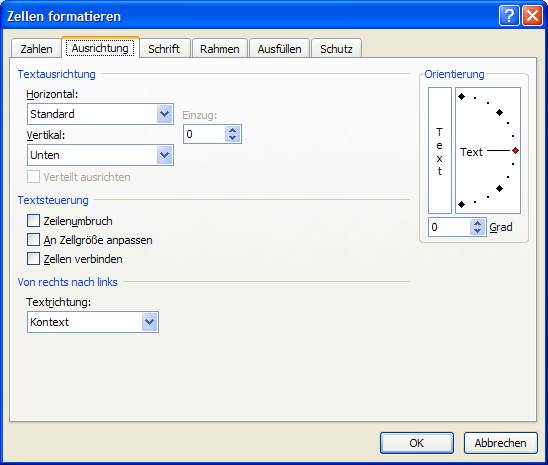 Weitere Möglichkeiten, die Ausrichtung zu verändern, finden Sie über das Startprogramm der Gruppe Ausrichtung.