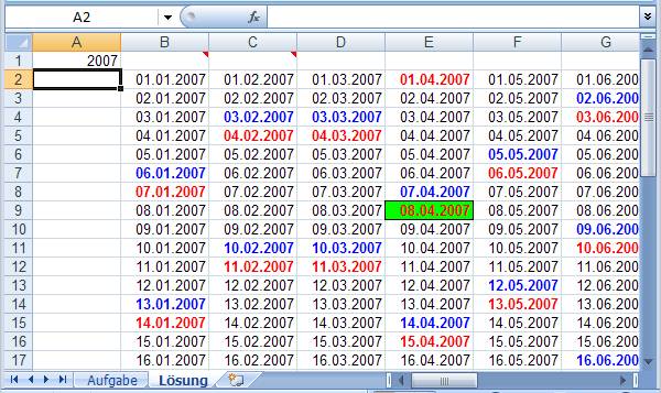 Abbildung 67, Samstage blau, Sonntage rot, Ostern grün formatieren
