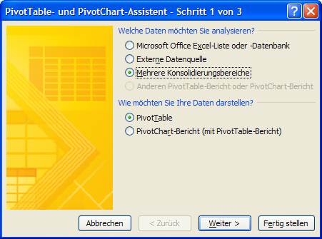 Der Befehl befindet sich im Pivot-Assistenten, der