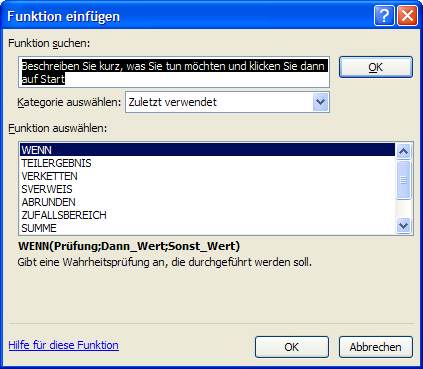Hier bietet EXCEL mit dem sog. Funktions-Assistenten eine große Hilfe. (Nicht zu verwechseln mit dem Office-Assistenten!)