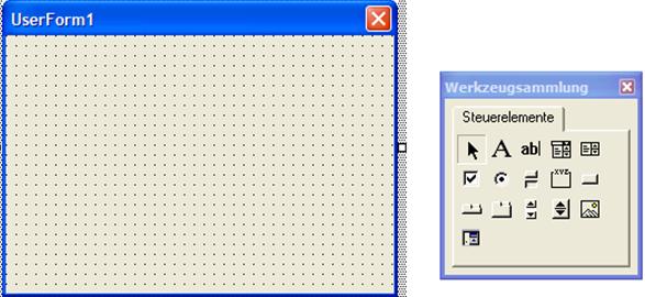 Abbildung 188, Leere UserForm mit 'Werkzeugkiste'