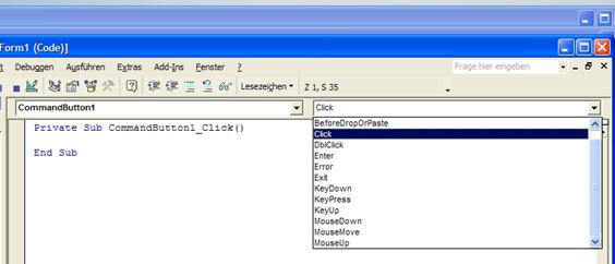 Das rechte Listenfeld oberhalb des Codefensters zeigt Ihnen weitere Ereignisse des Steuerelements: