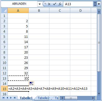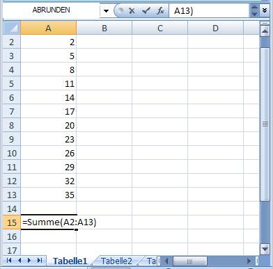 Die Vorteile der zweiten Methode liegen auf der Hand, zumal dann, wenn es sich bei der Zahlenkolonne nicht um 12 Zahlen handelt, sondern beispielsweise um 12.000.