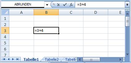 Im einfachsten Fall lautet eine Formel: = 3 + 4