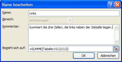 Rufen Sie dazu den Namens-Manager auf, wählen die Schaltfläche Neu und geben die Formel mit relativen Bezügen ein (wie in Abbildung 76).