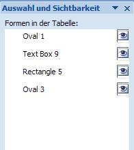 Werkzeuge zum Wechseln der Ebenen sowie den Befehl Auswahlbereich finden Sie im Register Einfügen, Gruppe Anordnen, jedoch nur dann, wenn ein Grafik-Objekt markiert und der Reiter Zeichentools aktiviert wurde