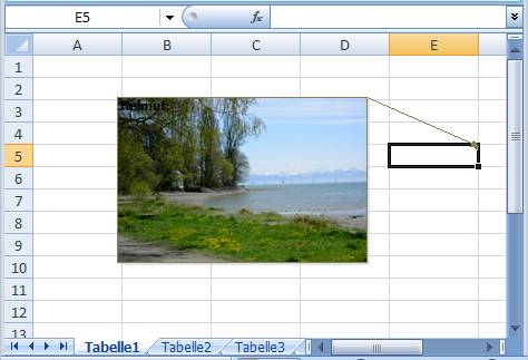Mit einem pfiffigen Trick lassen sich sogar Grafiken in einem Kommentar ablegen: Klicken Sie den Rand des Kommentarfeldes mit rechter Maustaste an, wählen Sie Kommentar formatieren - Farben und Linien –Ausfüllen – Farbe – Fülleffekte – Grafik – Grafik auswählen – o.k. Verzichten Sie auf eine Beschriftung. Die Grafik füllt Ihre Infobox aus (s. Abbildung 52) |