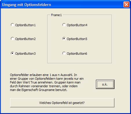 Gruppe von Optionsfeldern kann jeweils nur ein Feld den Wert True