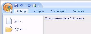 Abbildung 14, Die Office-Schaltfläche in der linken oberen Ecke des Excel-Fensters