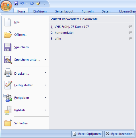 Abbildung 15, Das Menü der Office-Schaltfläche mit Zugang zu den Excel-Optionen