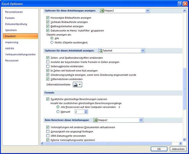 Abbildung 16, Die Excel-Optionen (ehemals Extras - Optionen)