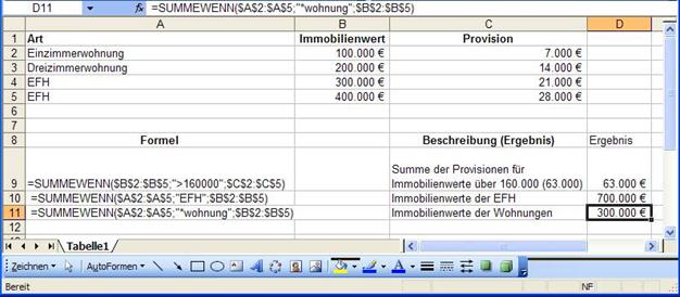 Abbildung 90, Beispiele zu Summewenn
