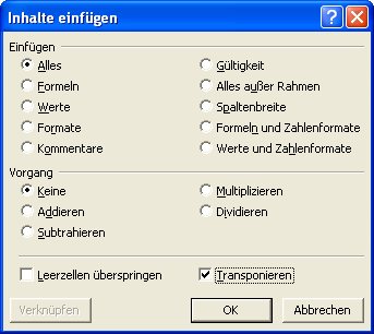 Aktivieren Sie das Kontrollkästchen Transponieren unten rechts im Dialogfeld gem. Abbildung 7 und bestätigen mit o.k.