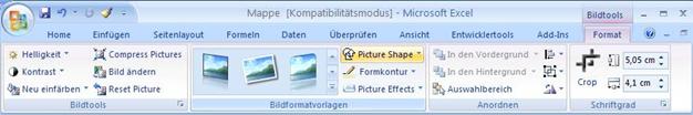 In der Multifunktionsleiste erscheint ein neues Register Format mit einem aufgesetzten Reiter Bildtools.