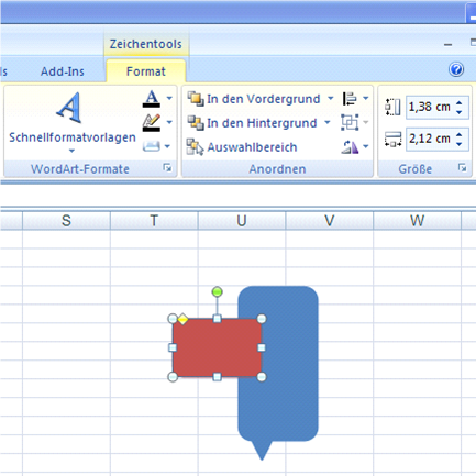 Sie können Ihren Grafik-Objekten Ebenen zuordnen über den Befehl Register Einfügen, Gruppe Anordnen - In den Vordergrund/ Hintergrund