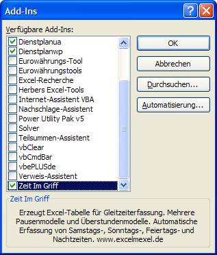 Optionen – AddIns – Verwalten: Excel AddIns – Gehe Zu…AddIn Manager).