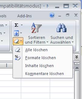 Befehle, um gezielt nur Formate oder nur Kommentare zu löschen. (s. Abbildung