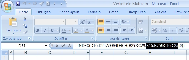 Jetzt kann man die Elemente der Matrix in der Formel einsehen.