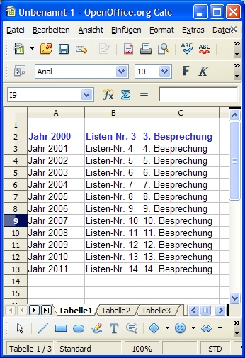 Beispielsweise wollen Sie eine Tabelle erstellen mit den Zeilenüberschriften Jahr 2000, Jahr 2001 usw.