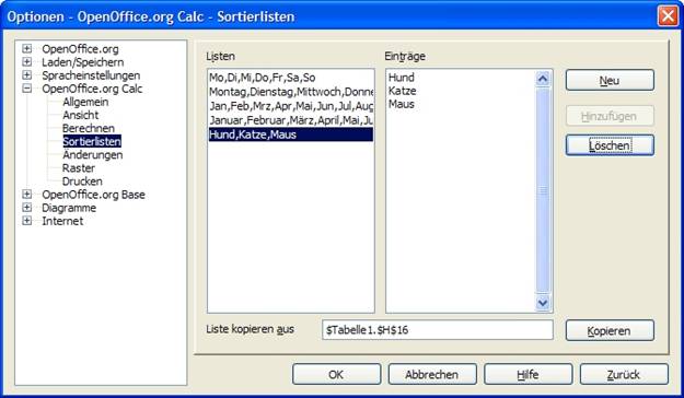 Optionen – OpenOffice.org Calc - Sortierlisten auf.
