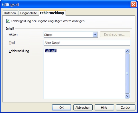 Sie eine individuelle Fehlermeldung erzeugen (s. Abbildung 52), die jedoch sehr