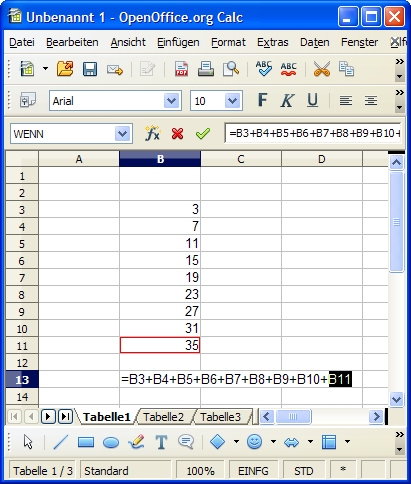 Die wichtigste und gebräuchlichste OO-Funktion ist die Funktion SUMME.