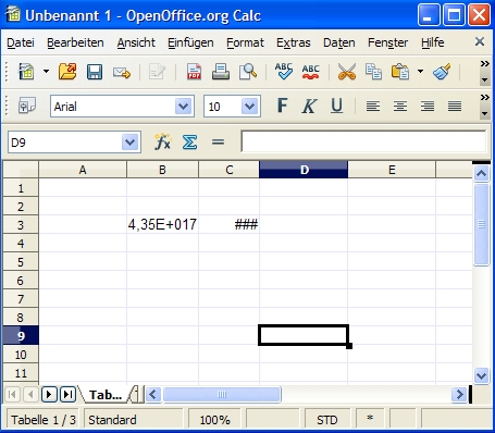 · In Zelle B3 mit der Umschaltung auf Wissenschaftliche Darstellung (Exponential-Schreibweise)