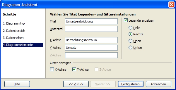 Im Schritt 4 des Assistenten legen Sie weitere Diagrammelemente fest.