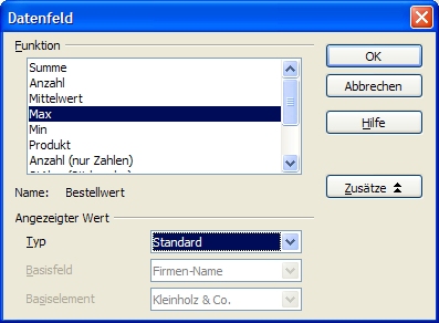 Eine sehr mächtige Funktion zur Datenanalyse erhalten Sie, wenn Sie das Datenfeld gem. Abbildung 95 aufrufen, die Schaltfläche Optionen anklicken und die Zusätze anzeigen.
