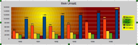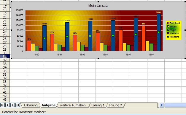Durch einmaliges Anklicken des Diagramms gelangen Sie in den Markierungsmodus1. In diesem Modus können Sie das Diagramm verschieben, vergrößern und verkleinern und löschen.
