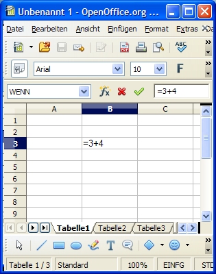 Im einfachsten Fall lautet eine Formel: = 3 + 4