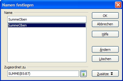 Bitte beachten Sie: Auch bei benannten Formeln müssen Sie auf absolute und relative Bezüge achten! Relative Bezüge beziehen sich auf die aufrufende Zelle; d.h. die Zelle, die bei der Definition des Namens aktiv ist. |
