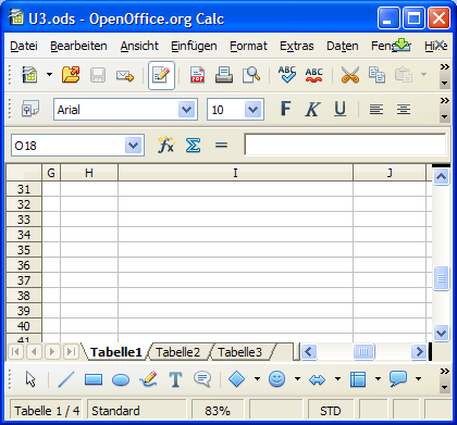 Die Reiter (hier mit den Bezeichnungen Tabelle1 und Tabelle2 usw.) werden als Blatt-Register bezeichnet. Zum Aufrufen des Kontextmenüs klicken Sie mit der rechten Maustaste eines der Register an.