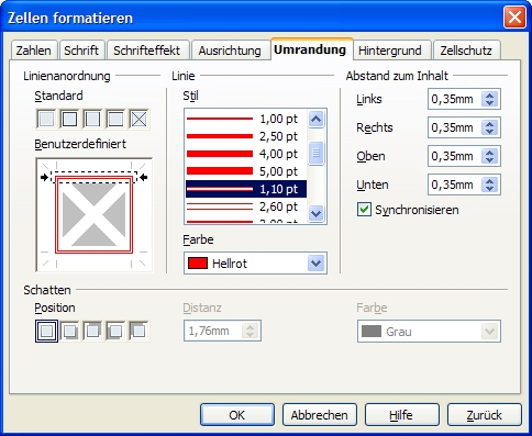 Format - Zellen, Register Umrandung ruft ein Dialogfeld nach Abbildung 8 auf.