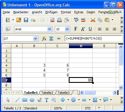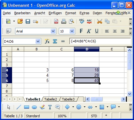 Abbildung 100, Matrixformel im Bereich D4:D6