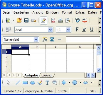 Das Namenfeld befindet sich oberhalb des Spaltenkopfes der