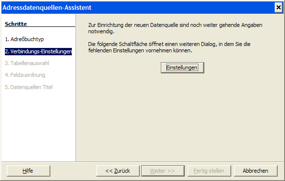 Rufen Sie den Assistenten auf: Datei – Assistenten – Adressdatenquelle.