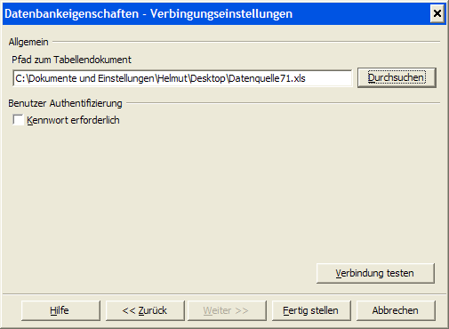 In unserem Beispiel wollen wir die Excel-Datei Datenquelle71.xls als Datenquelle registrieren.