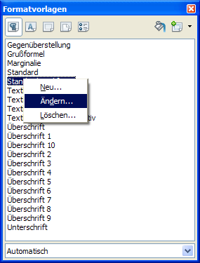 · Wählen Sie Format – Formatvorlagen. Daraufhin erscheint das Dialogfeld Formatvorlagen.