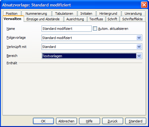 Standard-Formatierung; bzw. des Formats der Vorlage)