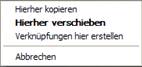 Öffnen Sie den Windows Explorer.Ziehen Sie die Datei oder den Ordner, die (den) Sie verknüpfen wollen, mit der rechten gedrückten Maustaste in seinen Zielordner. Es öffnet sich folgendes Textfeld: