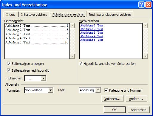 Die automatische Erzeugung eines Abbildungsverzeichnisses verläuft völlig analog zum Erstellen eines Inhaltsverzeichnisses.