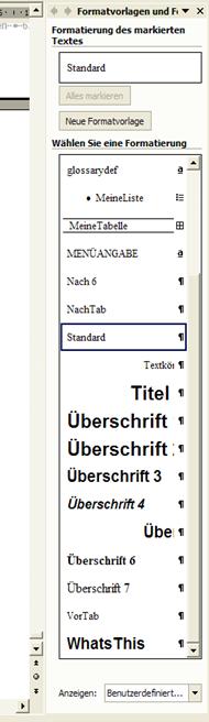 Abbildung 57, Darstellung der Formatvorlagen im Aufgabenbereich