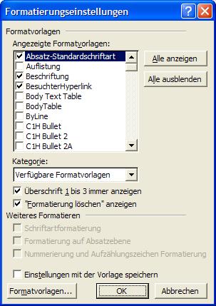 Abbildung 58, Dialogfeld zum Ausblenden von Formatvorlagen