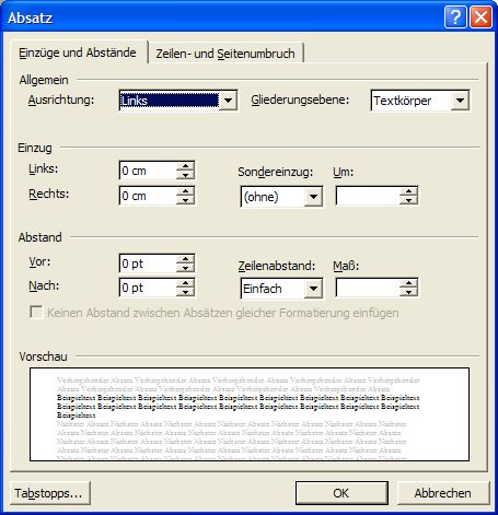 Abbildung 22, Dialogfeld zur Absatzformatierung