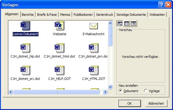 WORD hat bereits eine große Zahl von Dokumentvorlagen für