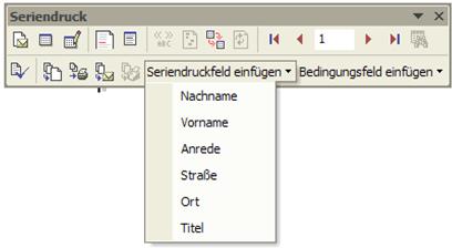 Das Menü Seriendruckfeld einfügen zeigt uns