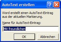 · Wählen Sie Einfügen – Autotext. Das Dialogfeld Autotext erstellen erscheint.