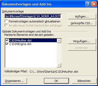 Öffnen Sie mit dem Befehl Extras – Vorlagen und Add-Ins… das Dialogfeld Dokumentvorlagen und AddIns (Abbildung 60).