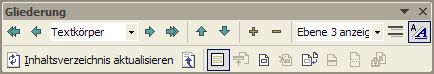 · WORD blendet automatisch die Symbolleiste Gliederung ein.